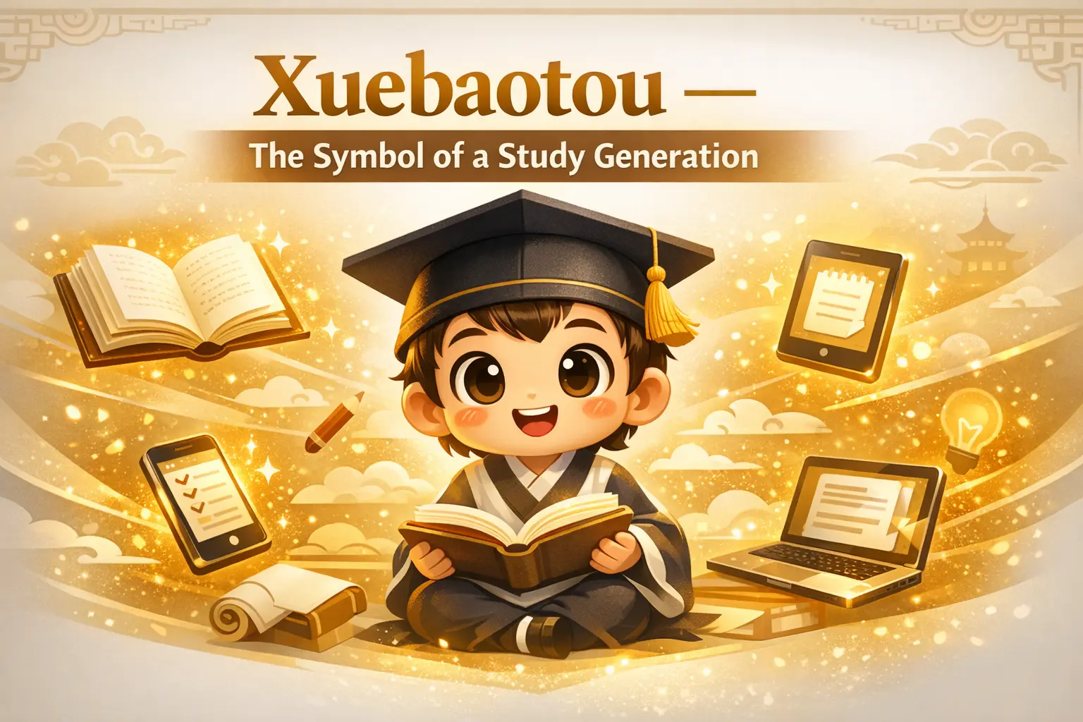 Xuebaotou cultural symbol showing Chinese academic identity, student meme culture, and digital learning community online